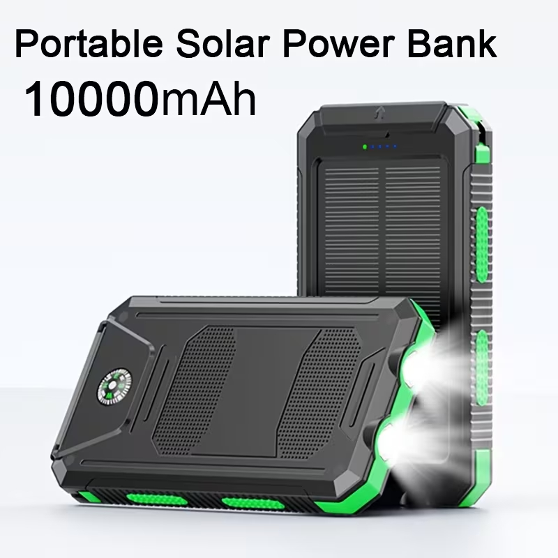 Солнечный зарядное устройство, 10000 мАч портативный аккумулятор, внешний блок питания с USB C входом/выходом/свето...