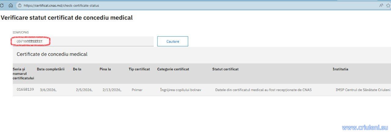 | Форум Всё о Криулянах Информация и новости г. Criuleni Как проверить свой больничный по INDP в Молдове (Verificare statut certificat de concediu medical) |