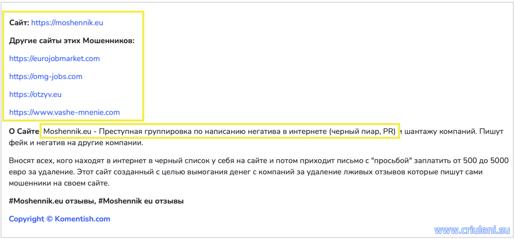 moshennik.eu - сайт созданный самими мошенниками, сайт созданный восхвалять кого надо и нагибать конкурентов, а именно с тематикой "Работа в Евросоюзе", при попытке написать отрицательный отзыв, ваш IP тупо блокируют и не размещают. По этому не стоить верить этому ресурсу, он создан что бы восхвалять определенную сеть сайтов которые взаимосвязаны. zagranis.com - +41796366148 сайт из Украины связан тесно с сайтом moshennik.eu , предлагает красивые вакансии и жирные зарплаты, но как только вы начинаете умно запрашивать, они вас игнорят, потому что обмануть не получиться. Зато везде о данном ресурсе длинные и красивые отзывы, которые дублируются текстом везде где можно, как БОТ размещает данные комментария и отзывы в дырявых сайтах, нет там не ограничений, не адреса, только имя, доказательство что это оставил реальный человек нету. Не когда не платите деньги на какие то бумаги или визы.. Счет данной компаний не существует, частное лицо принимает выплаты и не когда вам их не вернет если вы доверитесь всему этому балагану. Прикрепления: